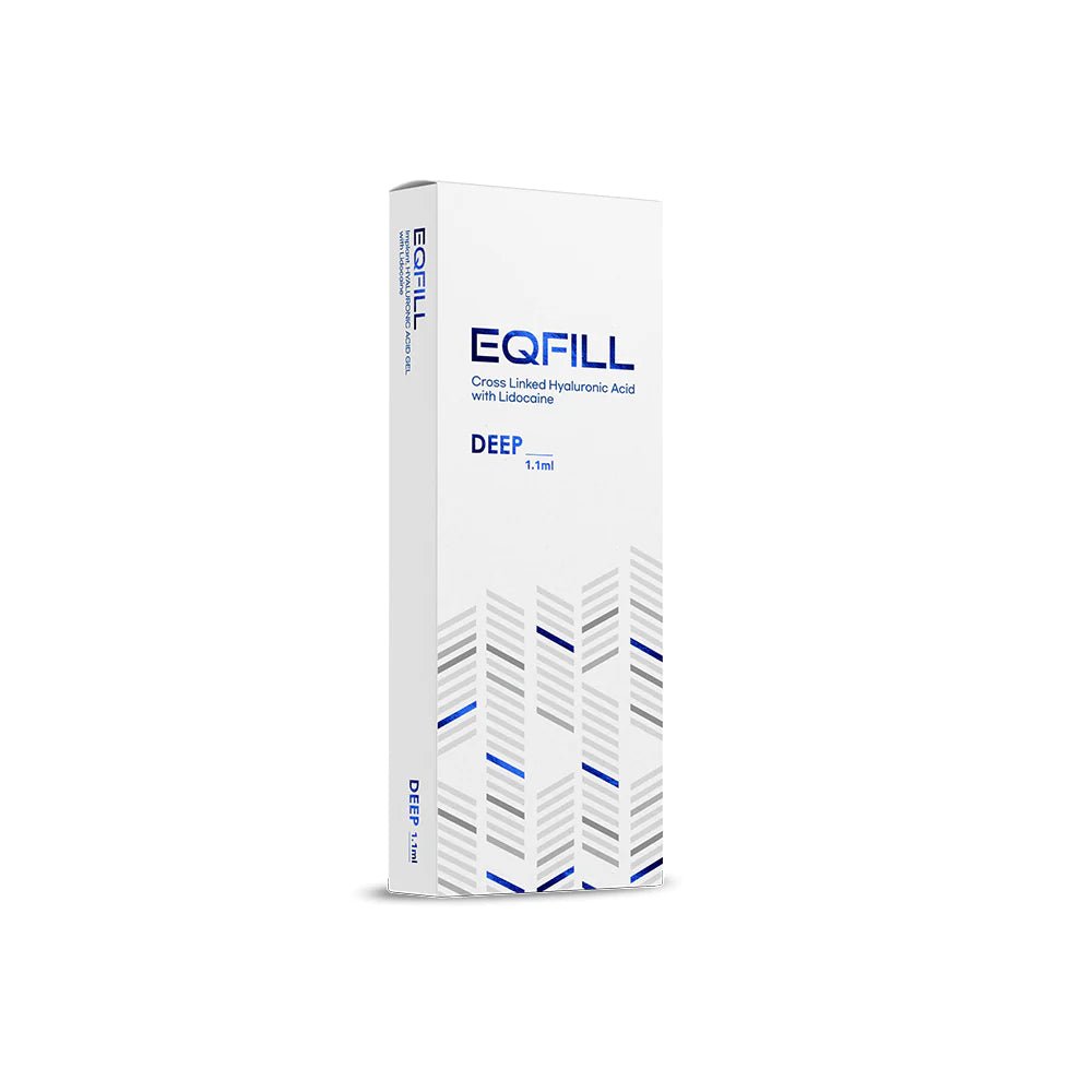 Introducing EQ Fill DEEP With Lidocaine. A highly elastic hyaluronic acid dermal filler designed to address deep wrinkles, nasolabial folds, and enhance various facial features including cheeks, chin, forehead, lips, and nose. This thicker gel formulation offers longer-lasting results, ideal for creating bold and defined features.
